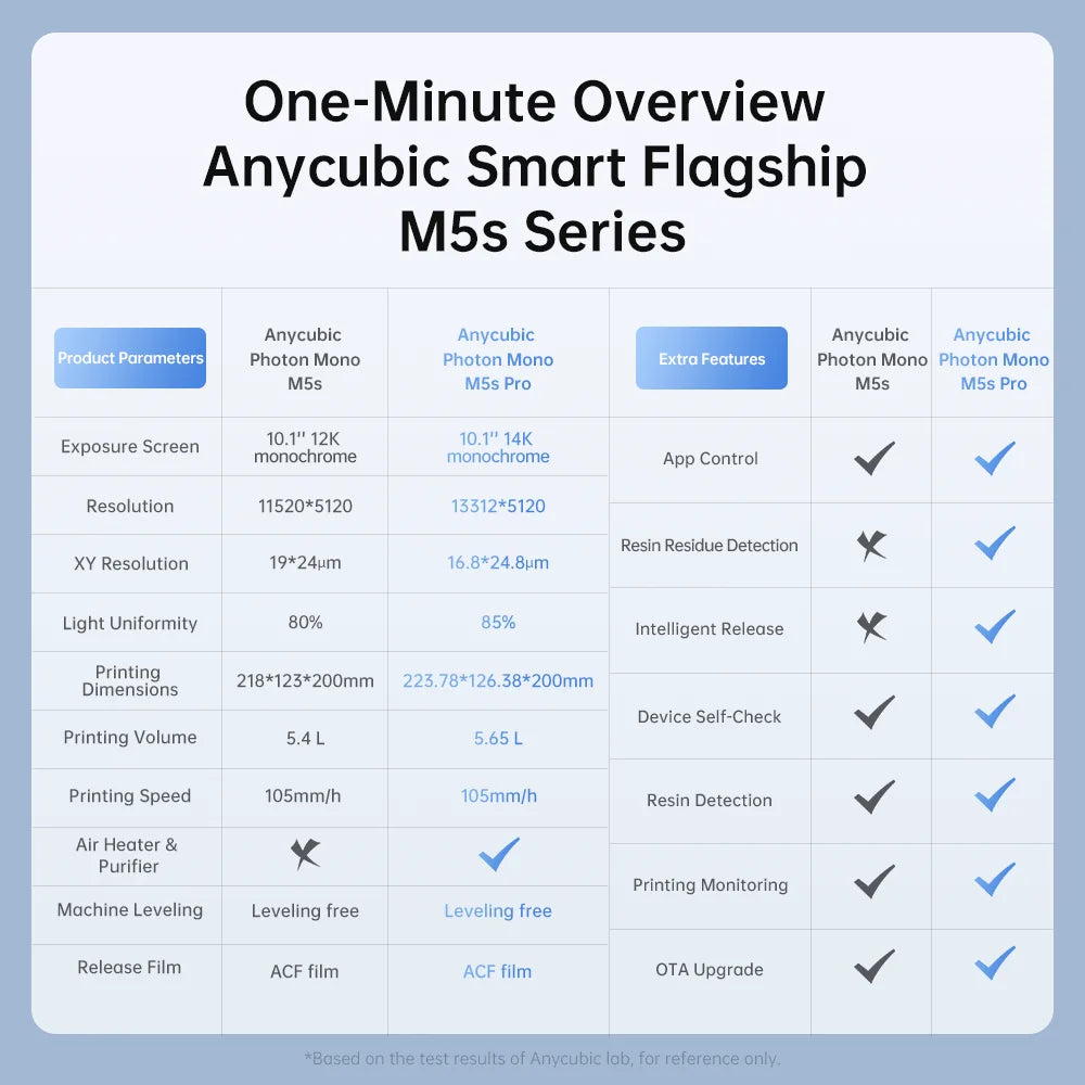 Anycubic Photon Mono M5s Pro – 14K Mono MSLA 10.1″ LCD Resin 3D Printer | 223×127×200 mm | Up to 105 mm/h
